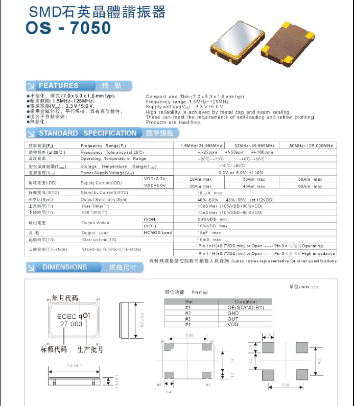 品名 SMD石英晶体谐振器