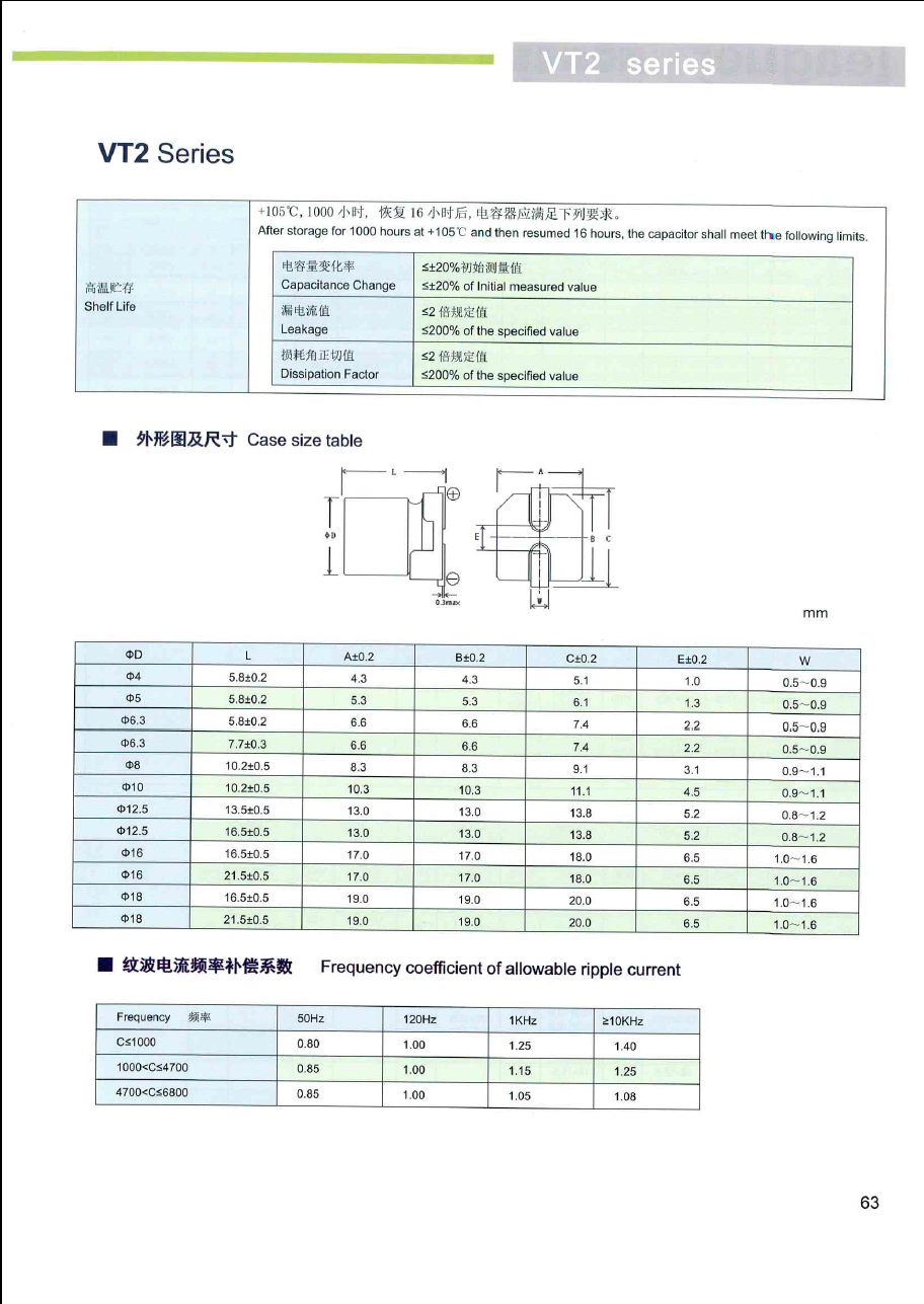 片式、105℃、2000小时