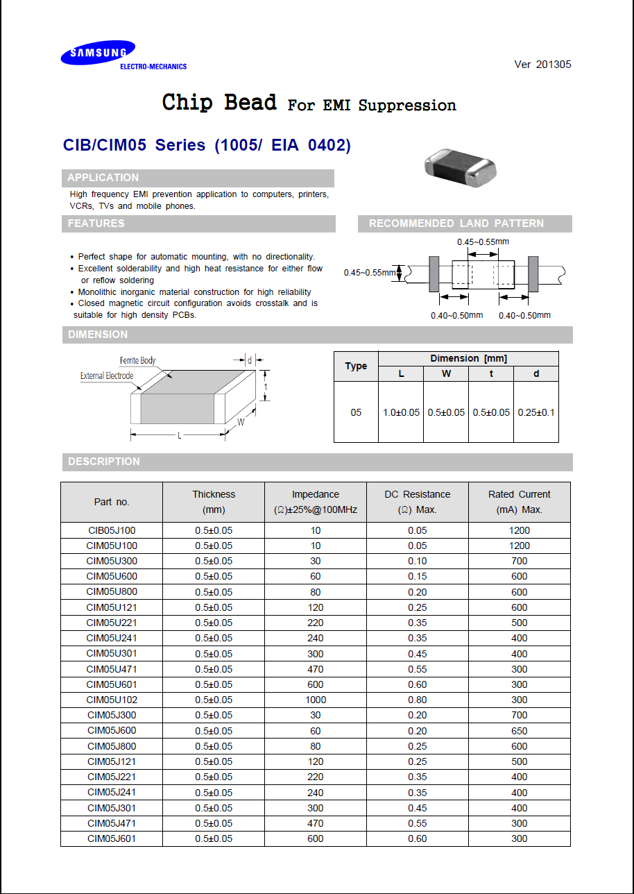 系列 CIB/CIM05 贴片磁珠