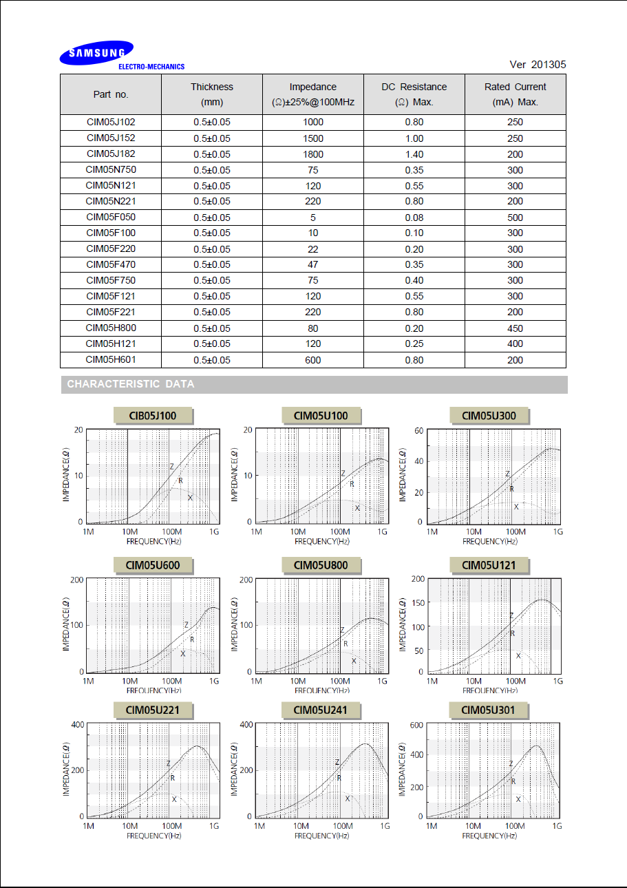 | Part no. | Thickness | Impedance | DC Resistance | Rated Current |