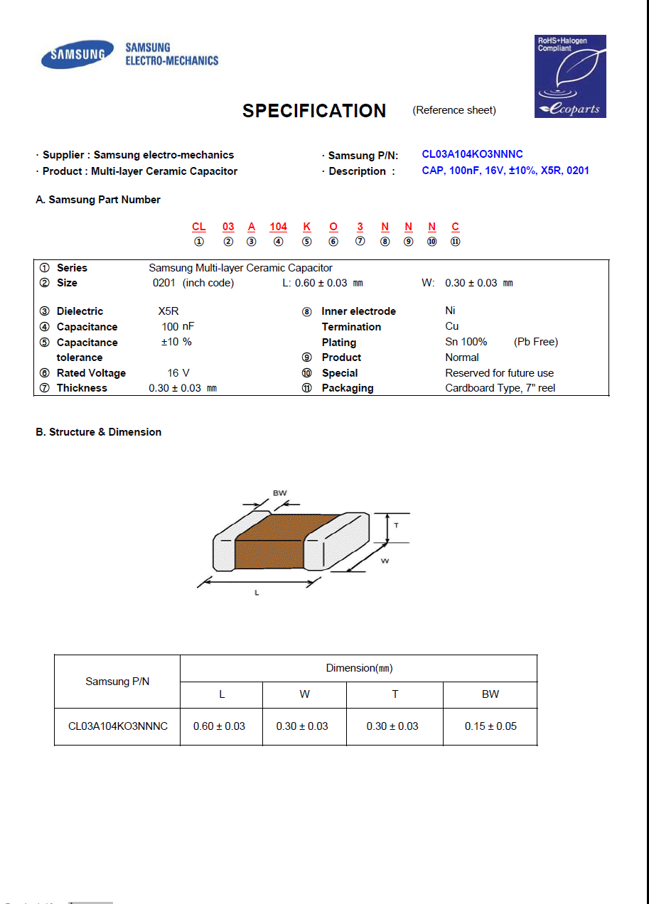 本产品为 公司 三星电机 系列 多层陶瓷电容 品名 CL21A106KPFNNN